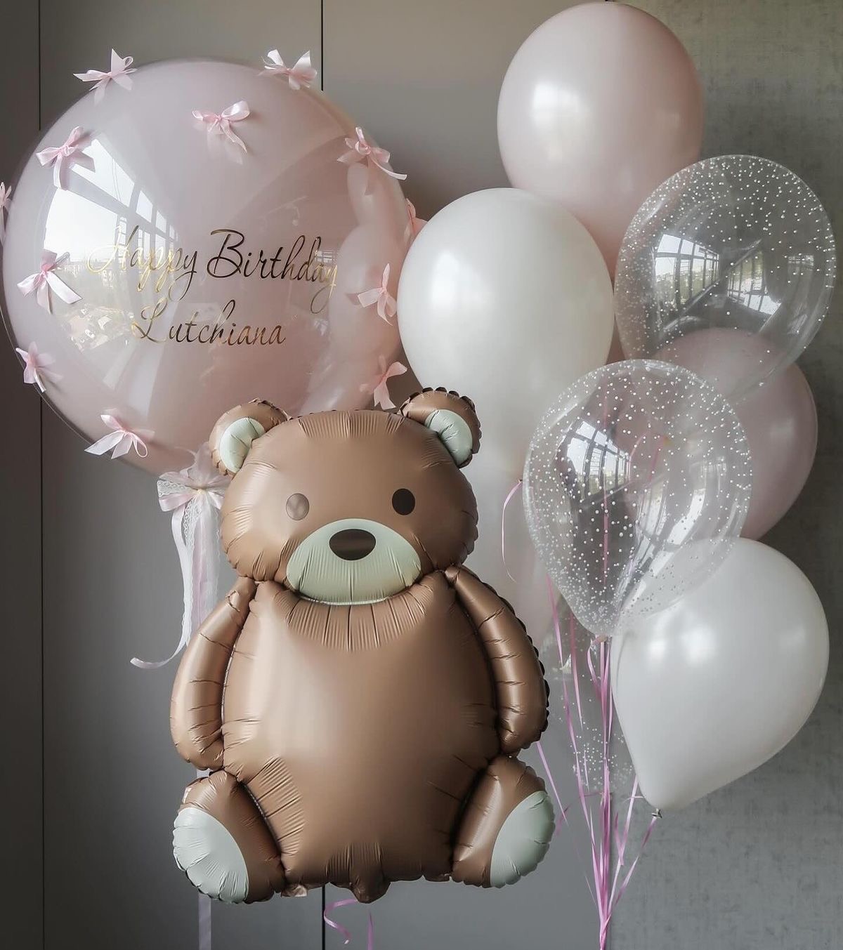 • Стеклянный шар гигант с надписью и бантиками - 1 шт.