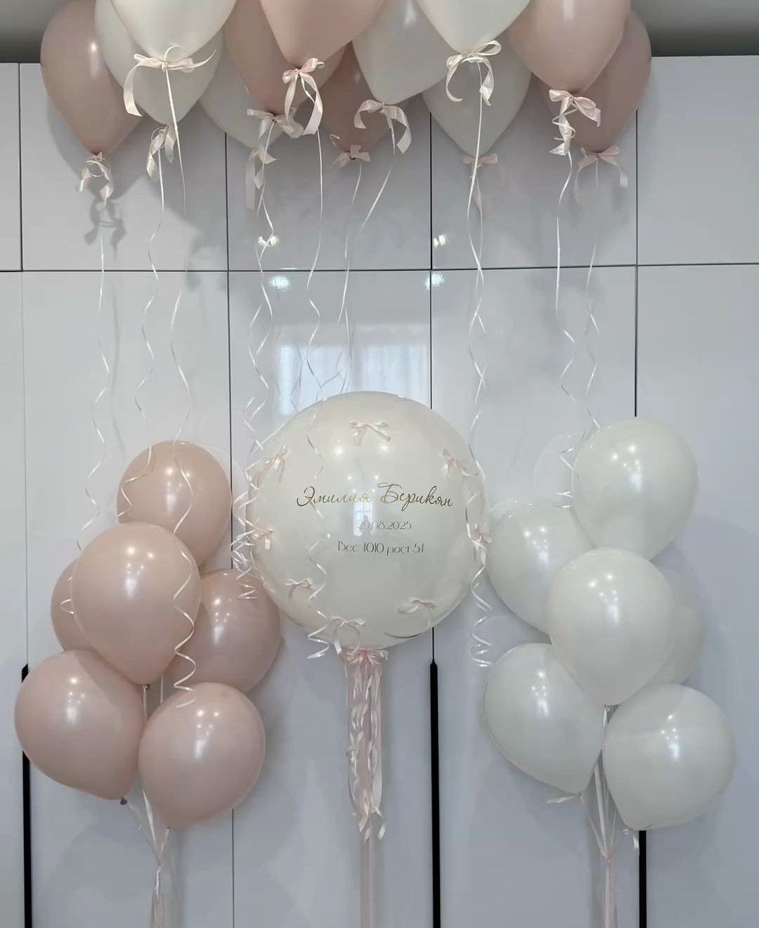 • Стеклянный шар гигант с надписью и бантиками - 1 шт.