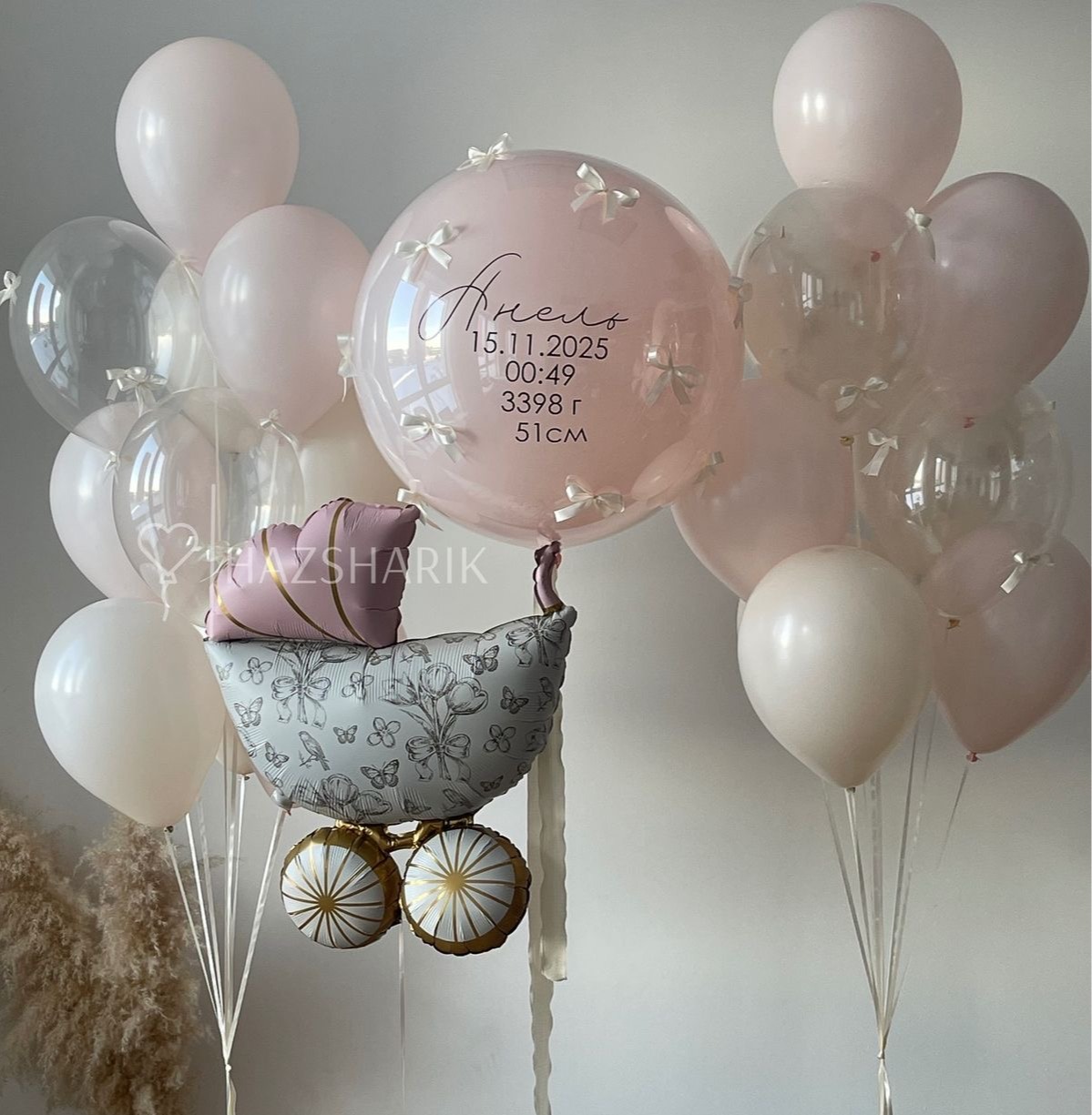 • Стеклянный шар гигант с надписью и бантиками - 1 шт.