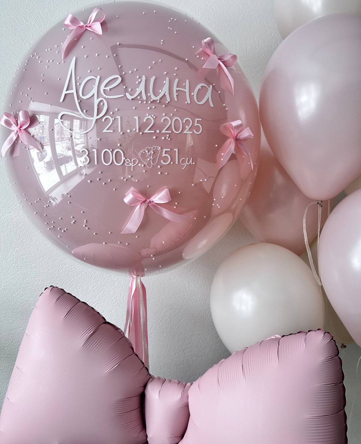 • Стеклянный шар гигант с надписью и бантиками - 1 шт.