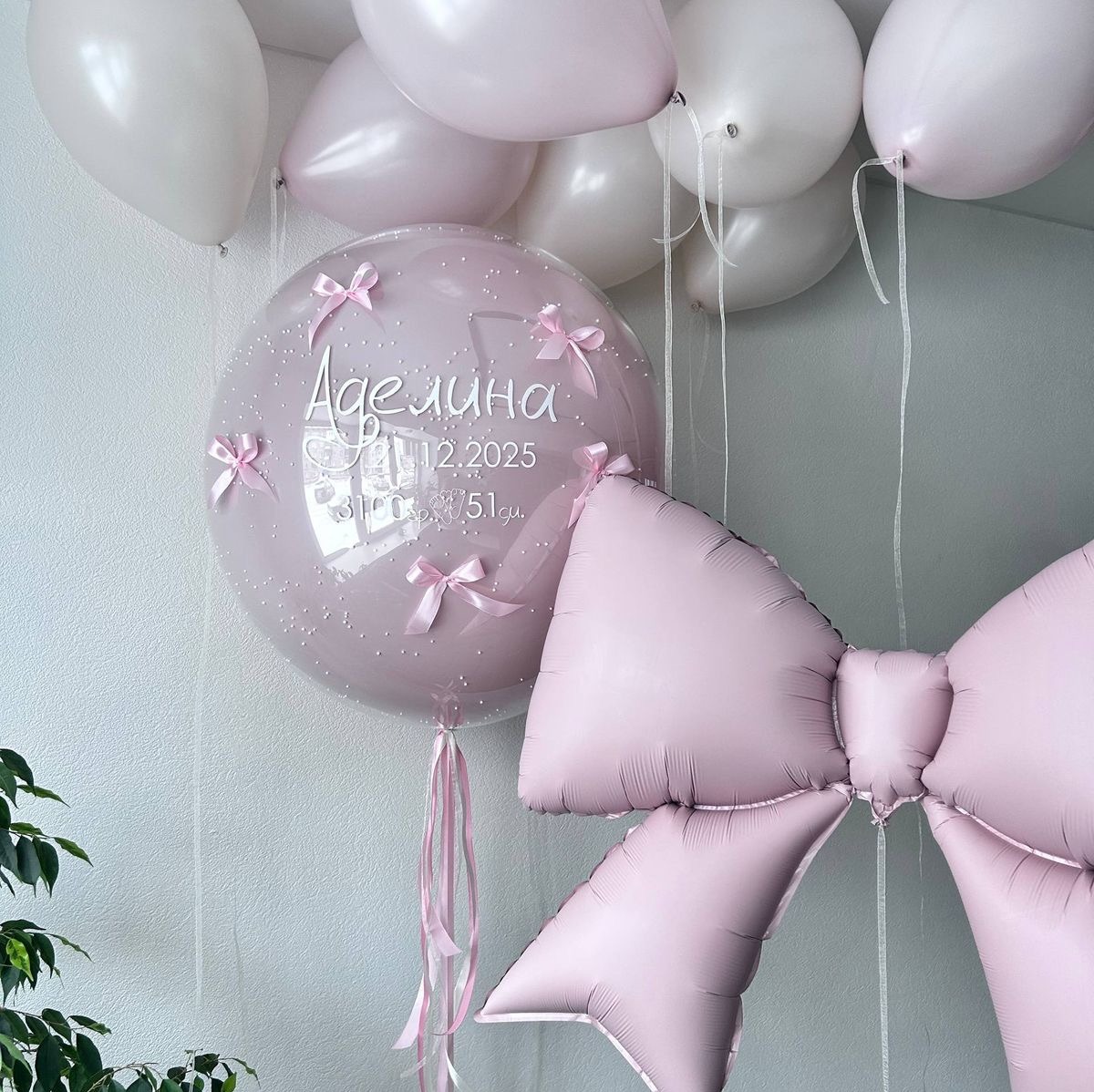 • Стеклянный шар гигант с надписью и бантиками - 1 шт.