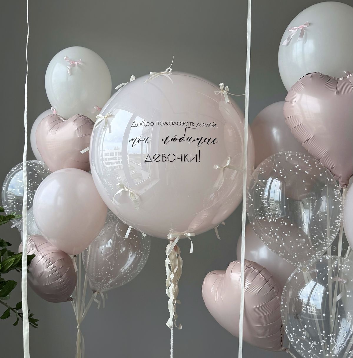 • Стеклянный шар гигант с надписью и бантиками - 1 шт.