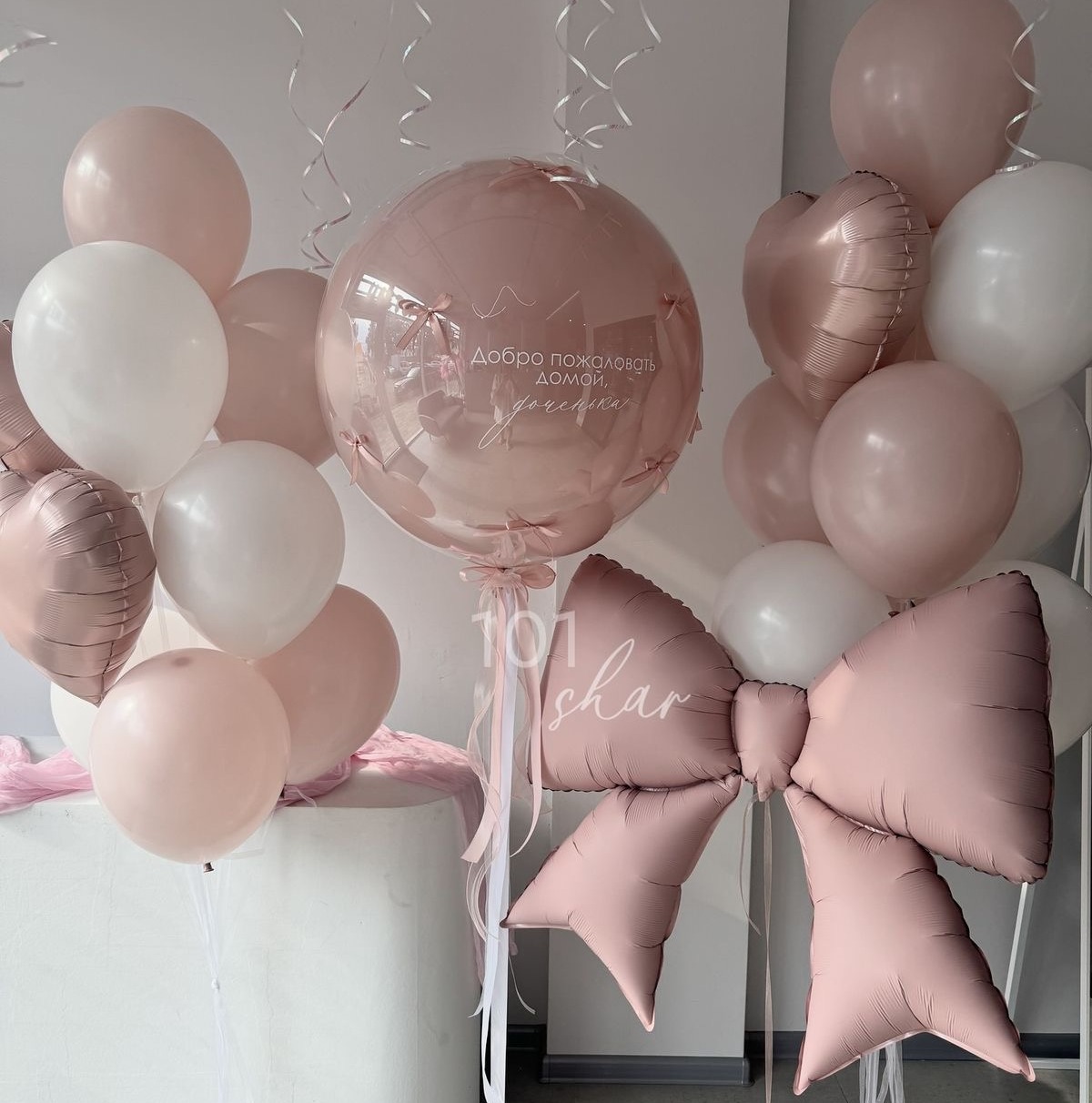• Стеклянный шар гигант с надписью и бантиками - 1 шт.