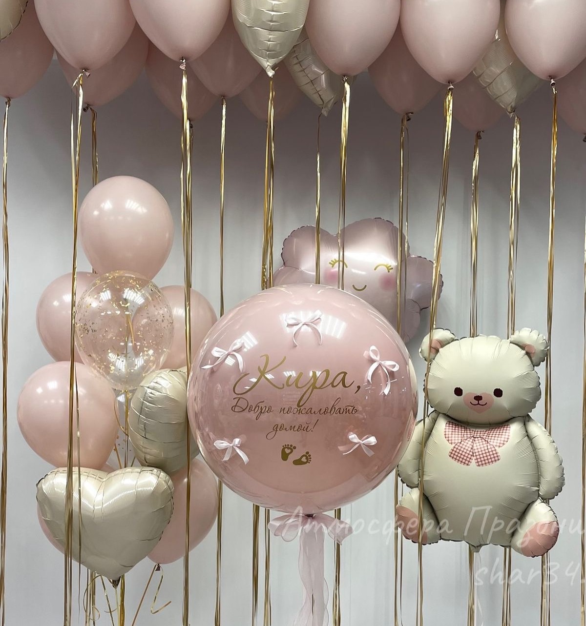 • Стеклянный шар гигант с надписью и бантиками - 1 шт.