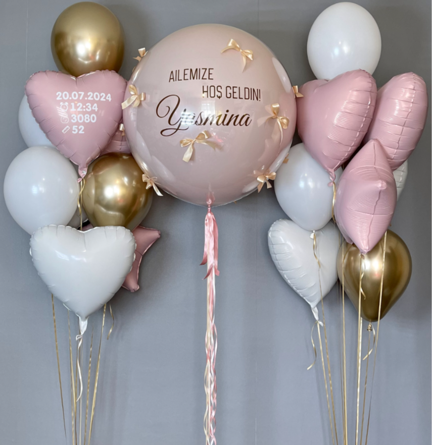 • Стеклянный шар гигант с надписью и бантиками - 1 шт.