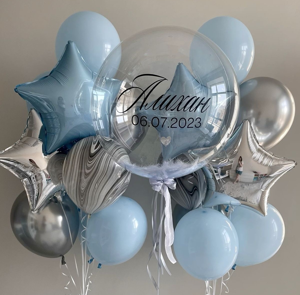 • Шар Bubbles с перьями и надписью - 1 шт.