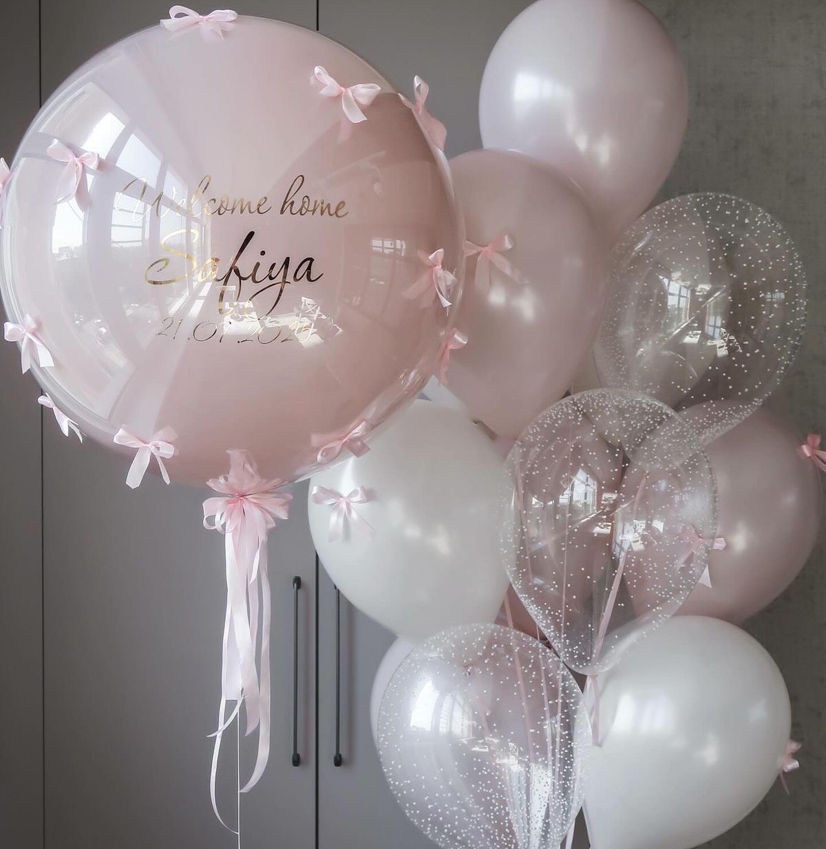 • Стеклянный шар гигант с надписью и бантиками - 1 шт.