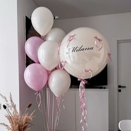 • Стеклянный шар гигант с надписью и бантиками - 1 шт.