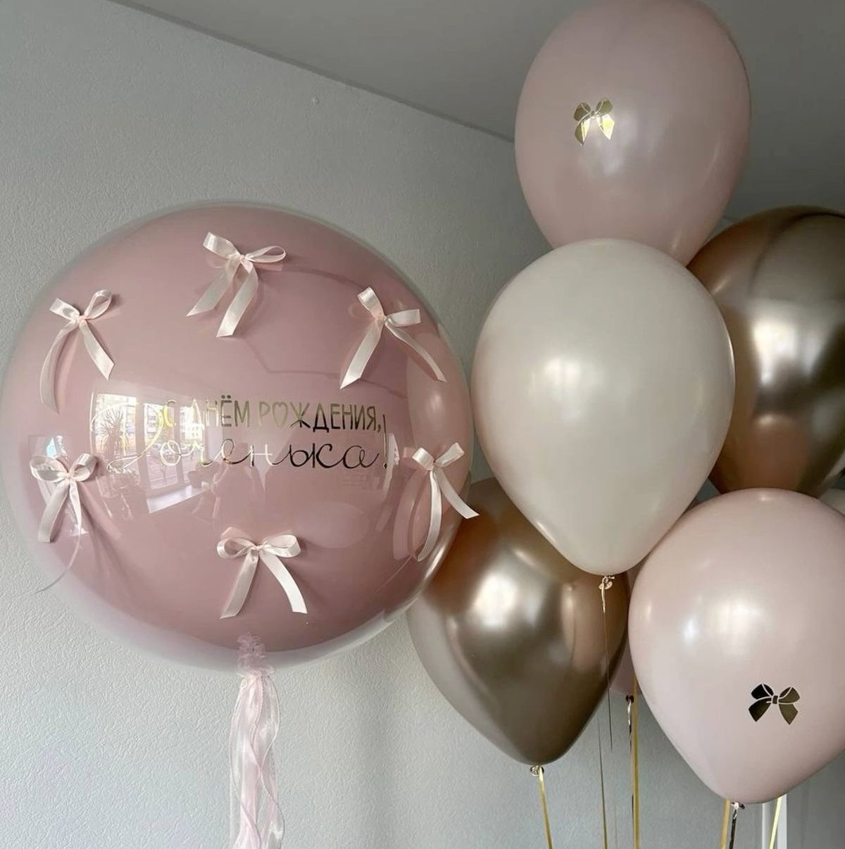 • Стеклянный шар гигант с надписью и бантиками - 1 шт.