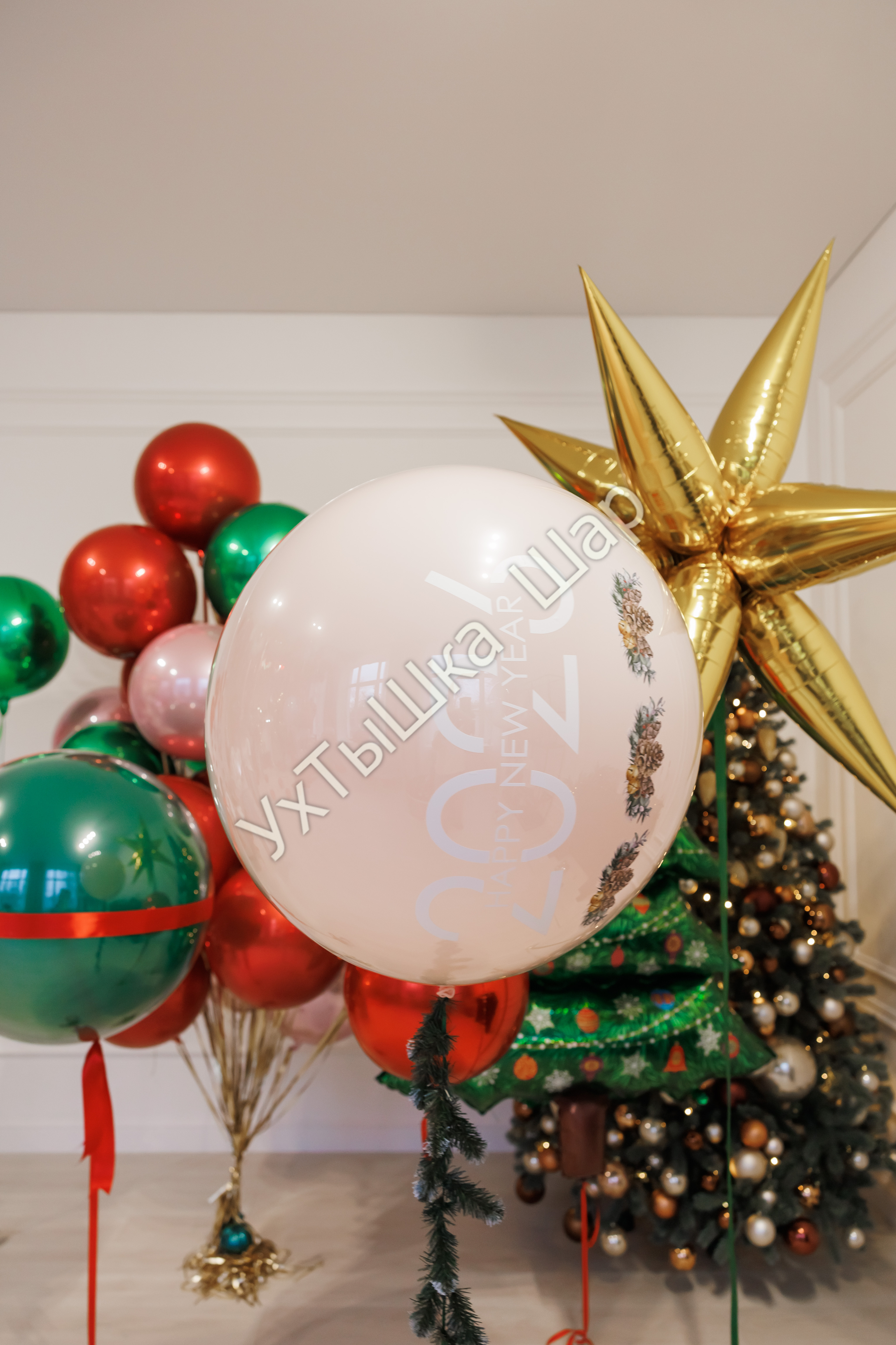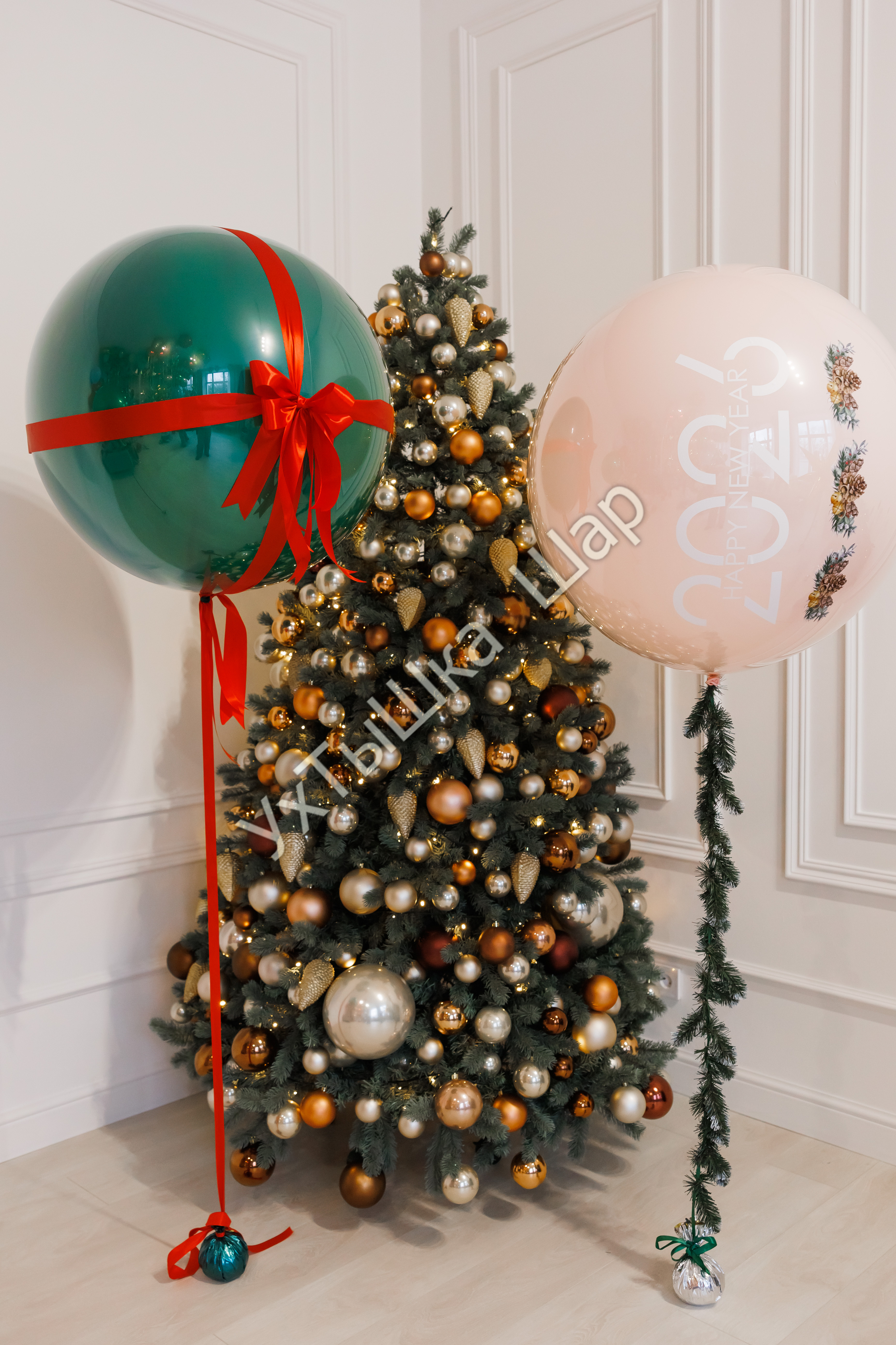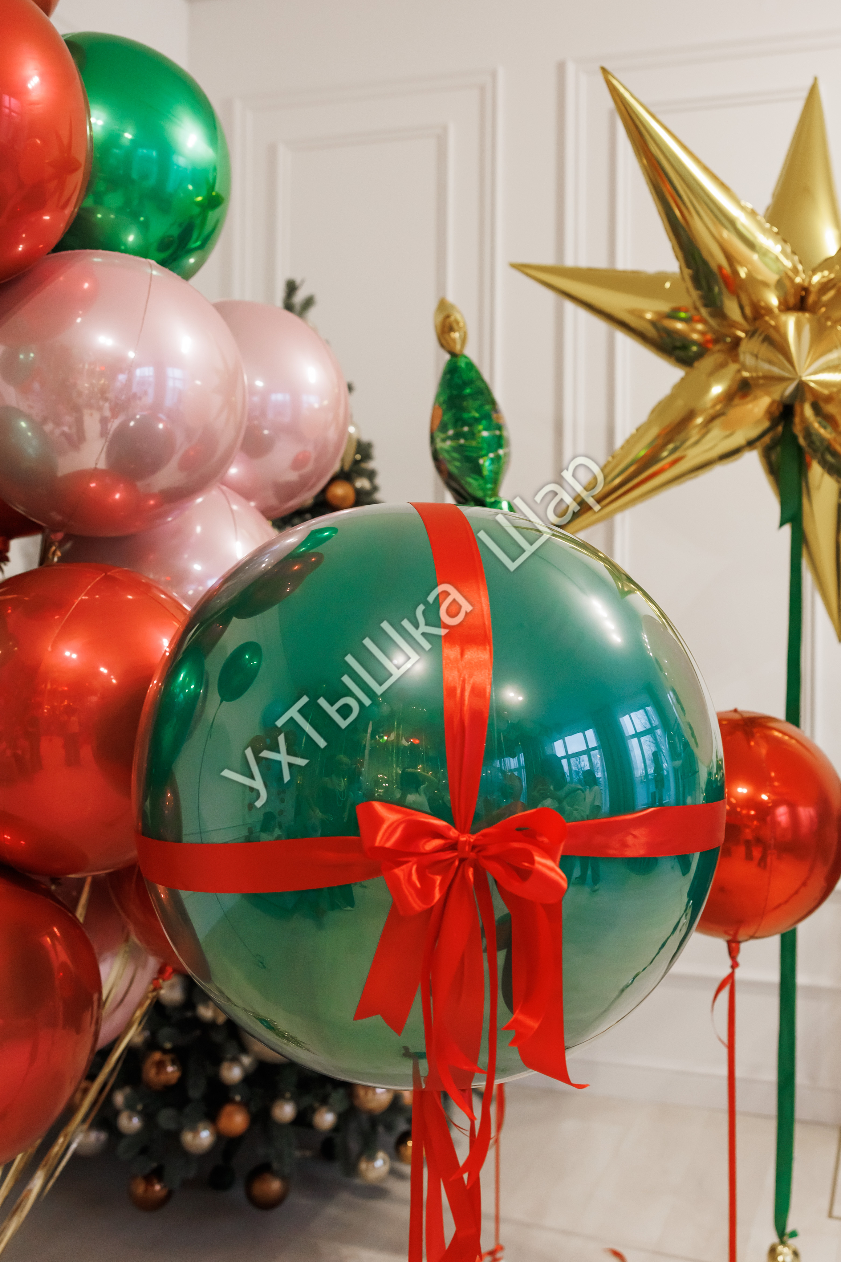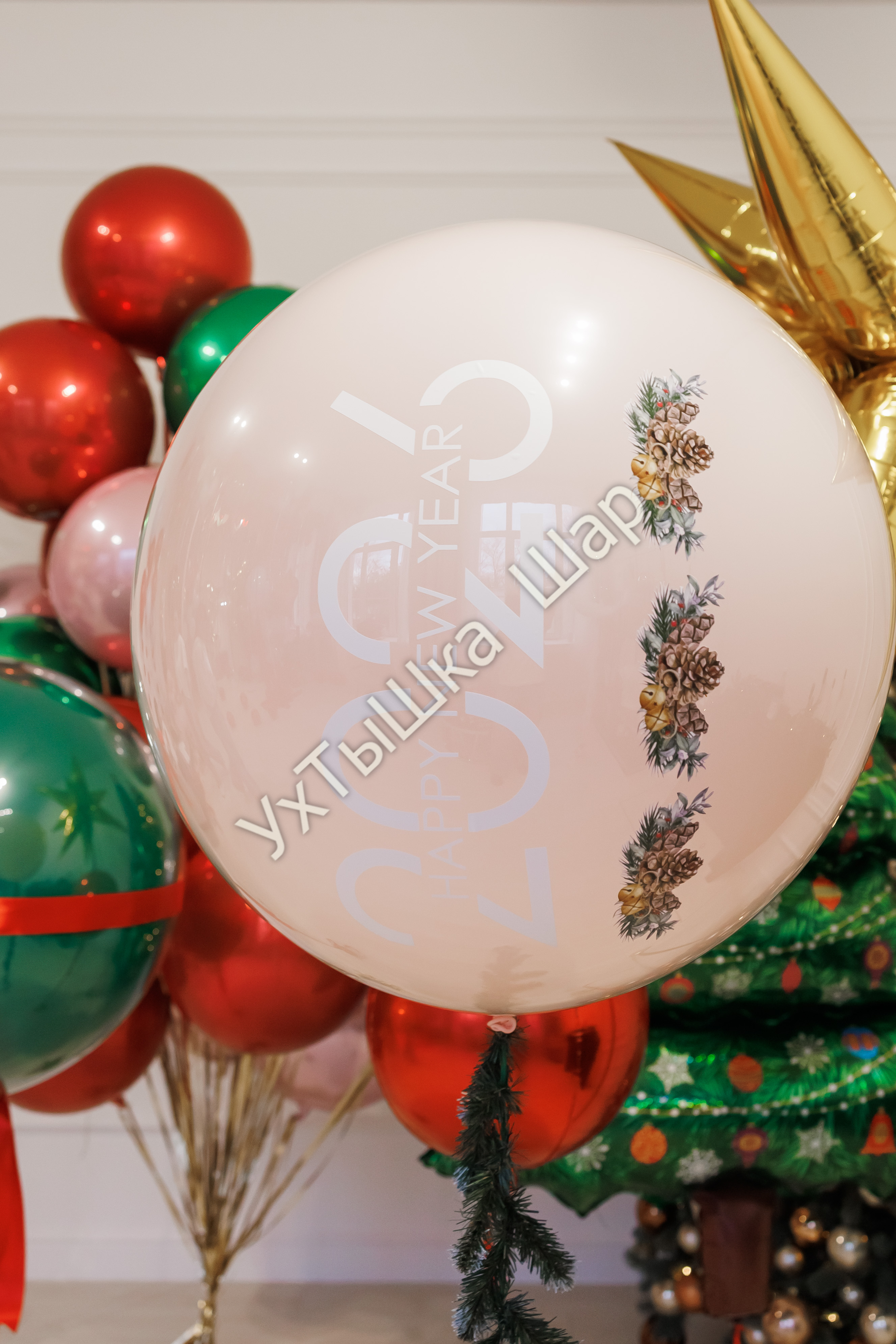 • Стеклянный шар гигант с надписью и хвост из еловых веток - 1 шт.